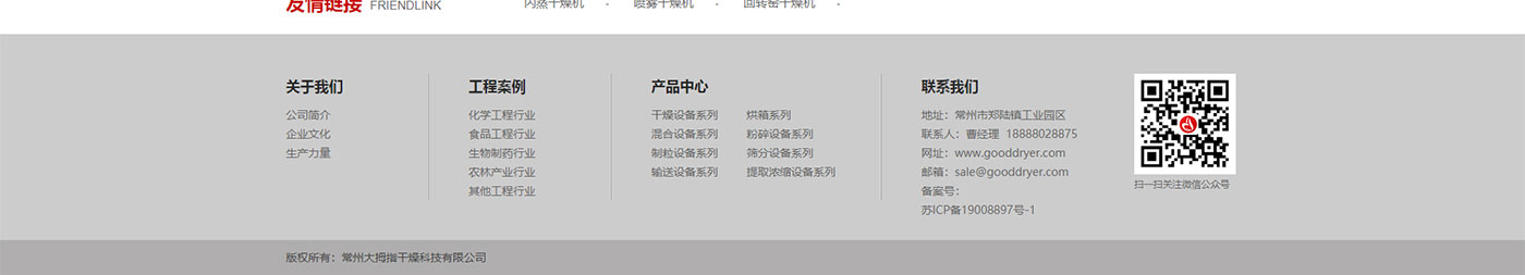 常州营销型网站建设——常州大拇指干燥科技有限公司位于江苏省常州市郑陆镇工业园区,专注于干燥设备、制粒设备、混合设备的研究、开发及制造,严格按国家GMP的要求设计、开发产品,被广泛应用于化学、食品、制药等各个行业,在全国各地都有合作客户。公司坚持“以人为本”的原则,严格按照现代化企业制度规范管理,积极创建^的企业文化,不断吸纳各方面高素质^人才加盟,加快创新,提升服务,企业取得了长足的发展,在行业中树立了良好的形象。