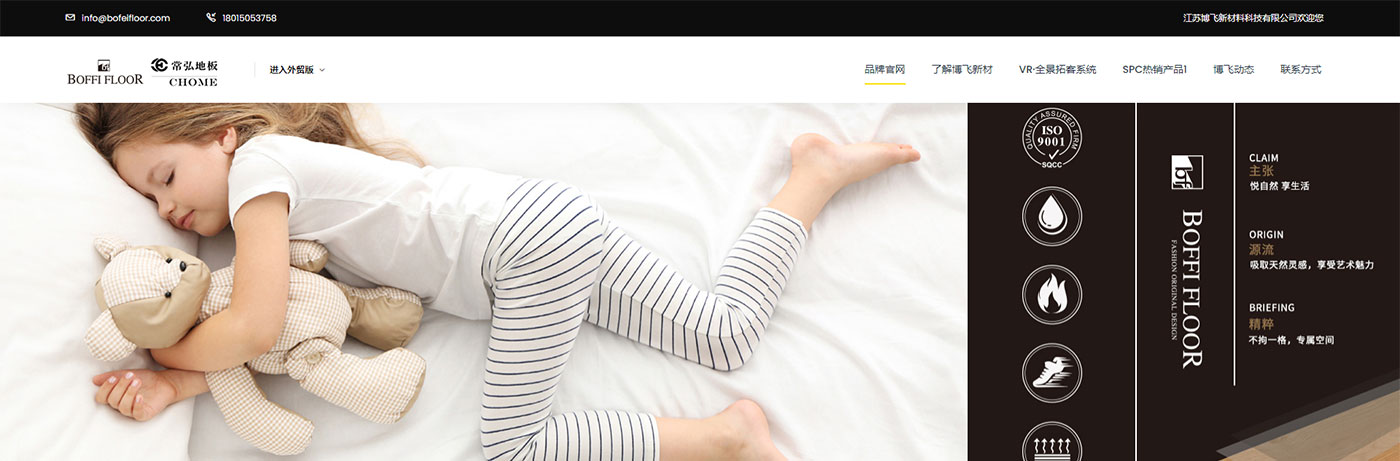 网站链接江苏SPC地板网站建设——江苏博飞新材料有限公司位于经济发达、交通便利的江苏省常州市横林镇,是国内专业从事木地板研发、生产和销售的出口企业,是SPC地板的“出口基地”。本公司成立于2019年,注册资金2000万人民币,公司引进专业的SPC地板生产设备和优良的地板加工工艺,设置了SPC地板研发部门和检验中心。公司占地面积达到3万多平方米,规模宏大,企业年产量达到1500多万平方米。同时本公司对质量体系精准布控,设置专业的质量控制部门,用心塑造出在国内外市场畅销的地板产品。