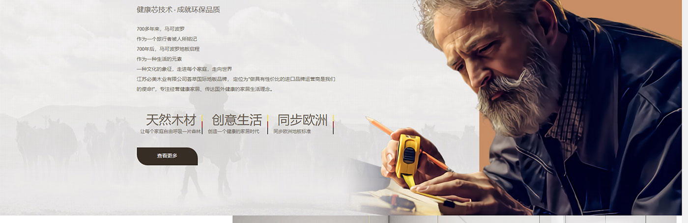 网站链接马可波罗地板,它为提升一个家的活力。为改善一段家居关系而来。一直前进,从未止步!马可波罗地板秉承了欧洲文化对传统制造艺术的专注,以设计感为导向,并融入现代的制造技术,不断开拓创新,为客户带来越来越丰富的地板产品。马可波罗地板也会在传达健康、推崇品质生活理念的道路上一如既往、一路向前, 让客户可以享受艺术与自然、走出自己的品味人生。马可波罗地板,长久以来,马可波罗地板始终贯彻以人为本的设计理念,结合当下的住宅设计潮流,致力于为人们打造舒适、愉悦的居家环境。一切人为的后期加工,都无法完全还原木材真实的自然原味;因此选材便成为马可波罗地板绿色品质中重要的环节之一。对地板制造所需的所有主材及辅料都制定了严格的选用标准、只选用优质原料,令产品从诞生之初就具备了良好的品质底蕴。