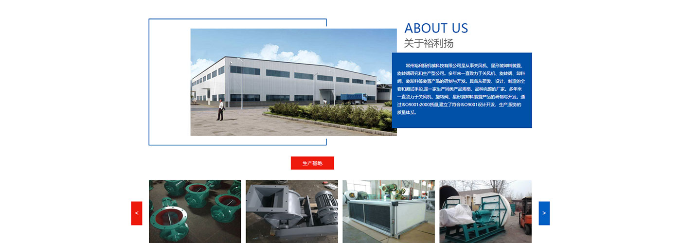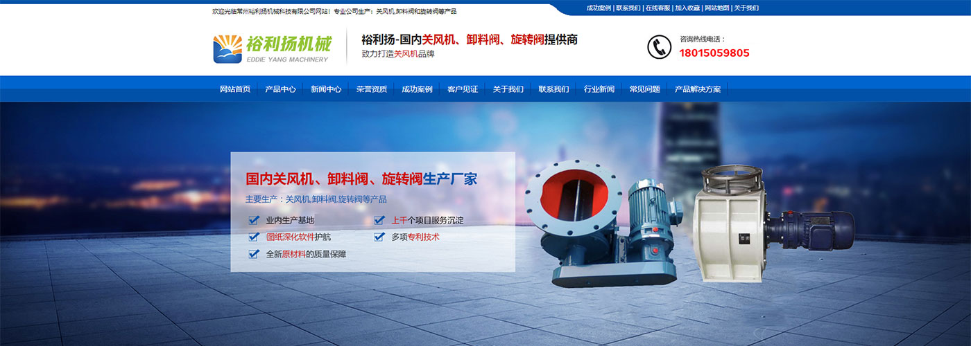 链接常州营销型网站建设——常州裕利扬机械科技有限公司是从事关风机、星形装卸料装置、旋转阀研究和生产的专业技术公司。年来一直致力于关风机、旋转阀、卸料阀、装卸料等装置产品的研制与开发。具备从研发、设计、制造的全套力量和测试手段,是生产同类产品规格、品种较多的厂家。多多年来一直致力于关风机、旋转阀、星形装卸料装置产品的研制与开发。通过ISO9001:2000质量认证,建立了符合ISO9001设计开发,生产,服务的质量体系。常州裕利扬机械科技有限公司凭着经营关风机,卸料阀,旋转阀等系列多年经验,得到了厂商的好评,为广大用户提供咨询及报价,欢迎来电咨询交流!