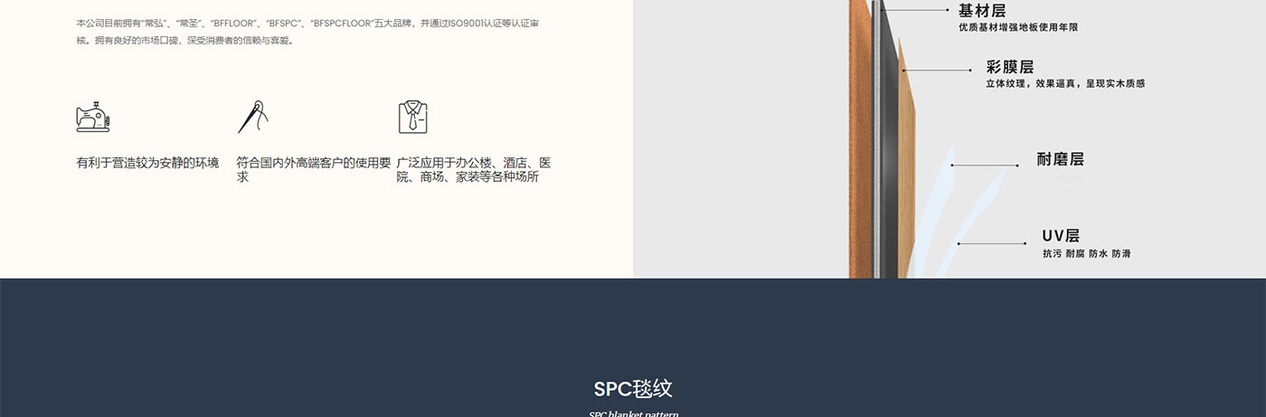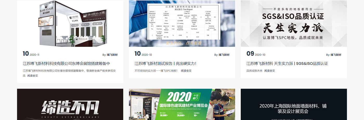 网站链接江苏SPC地板网站建设——江苏博飞新材料有限公司位于经济发达、交通便利的江苏省常州市横林镇,是国内专业从事木地板研发、生产和销售的出口企业,是SPC地板的“出口基地”。本公司成立于2019年,注册资金2000万人民币,公司引进专业的SPC地板生产设备和优良的地板加工工艺,设置了SPC地板研发部门和检验中心。公司占地面积达到3万多平方米,规模宏大,企业年产量达到1500多万平方米。同时本公司对质量体系精准布控,设置专业的质量控制部门,用心塑造出在国内外市场畅销的地板产品。