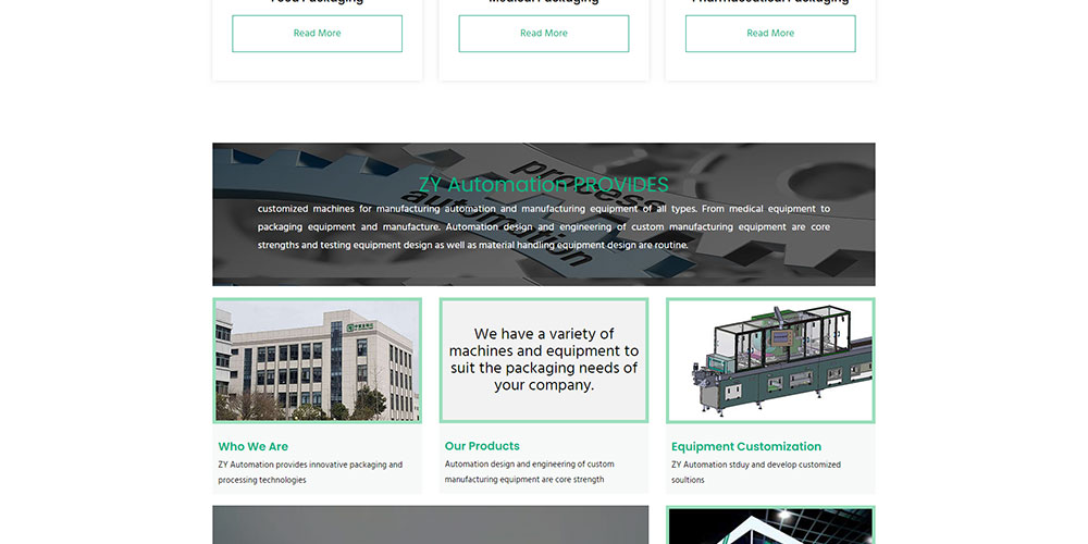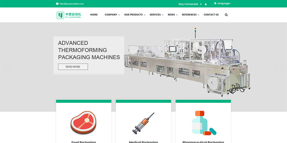 链接外贸型网站建设-Over more than 20 years of “know- how in packaging” in every aspect of your project, Hangzhou Zhongyi Automation Equipment Co. (ZY Automation) is an ISO (9001:2015) and CE certified enterprise that provides innovative packaging and processing technologies for the medical and food industries. We specialize in manufacturing equipment for a wide range of industrial applications, including disposable medical instruments and medical dressings, as well as processing equipment for automatic feeding and loading.