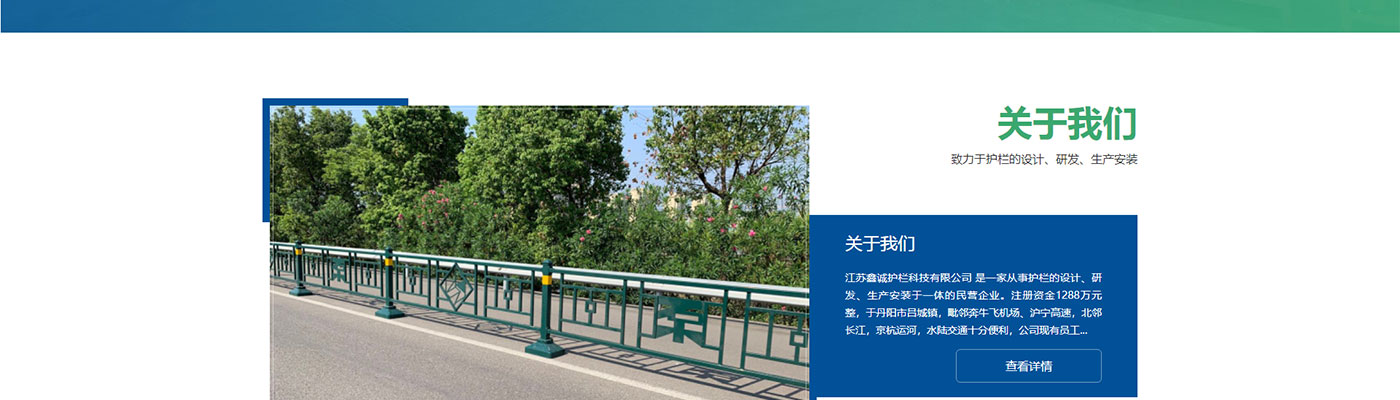 链接江苏营销型网站建设-江苏鑫诚护栏科技有限公司是一家从事护栏的设计、研发、生产安装于一体的民营企业。注册资金1288万元整,于丹阳市吕城镇,毗邻奔牛飞机场、沪宁高速,北邻长江,京杭运河,水陆交通十分便利,公司现有员工100多人,年生产能力120万米以上,拥有专业施工安装队伍及快速反应的售后服务部门。 企业是致力于生产销售交通护栏、市政护栏,文化护栏、京式护栏、园林护栏、建筑护栏、铝制护栏、铁艺护栏、的专业生厂家,设有生产基地、销售、研发中心等机构。根据我国护栏产品的现状和发展趋势,设计开发出数种护栏及配营产品。